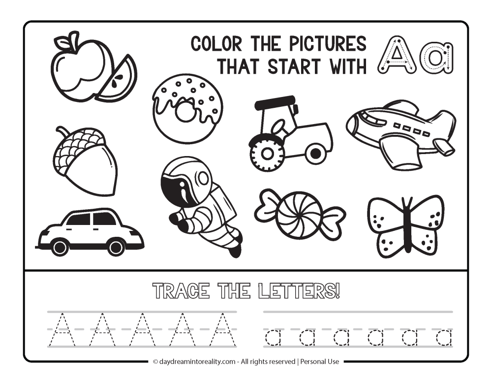 In addition to identifying beginning sounds, there’s a small section on each page for kids to trace each letter in uppercase and lowercase. This is a fantastic way to reinforce letter formation and recognition.