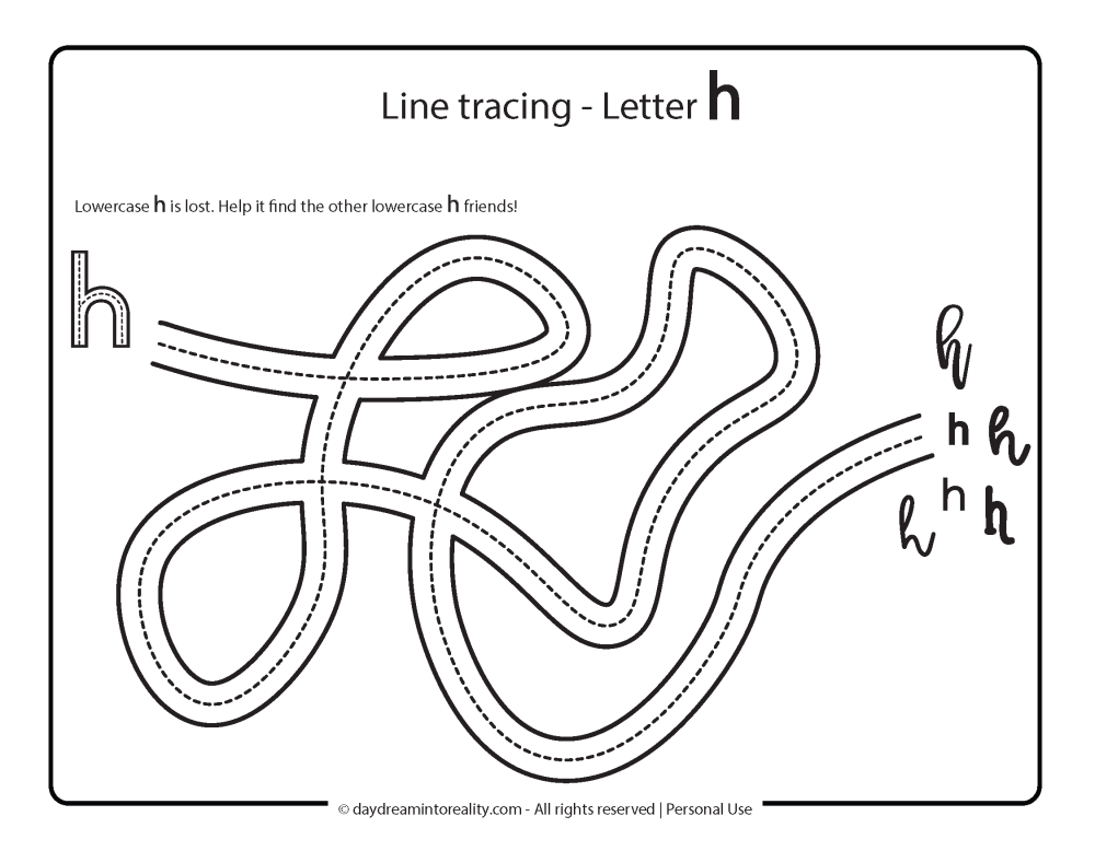 It is a great idea to have your young children practice line tracing before they begin letter tracing. The line tracing worksheets below focus on the letter “H,” providing a fun way to introduce your child to this letter.